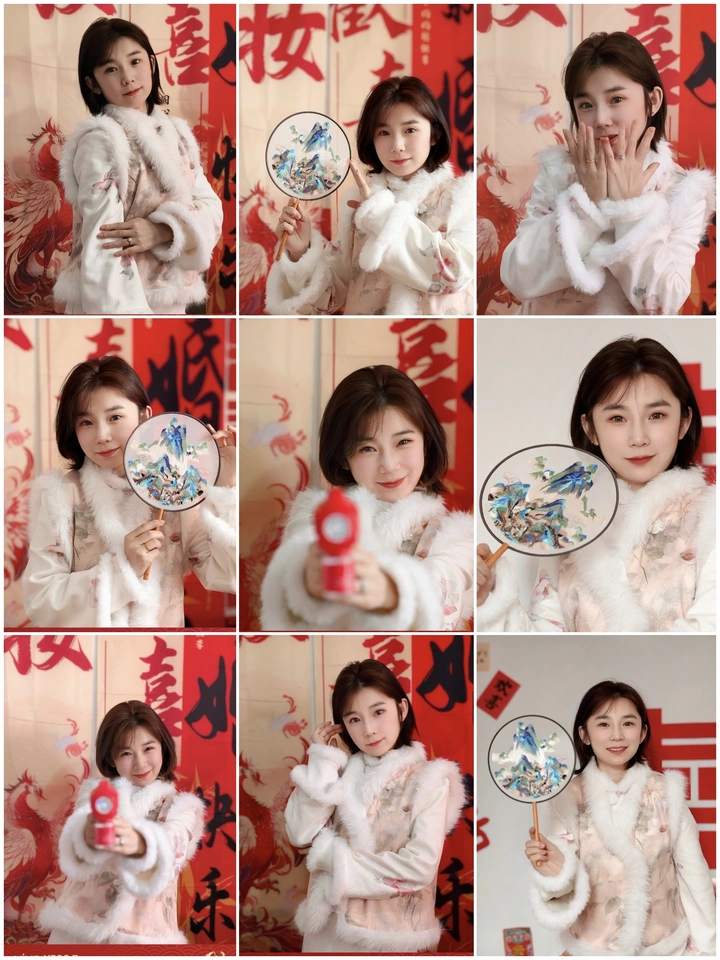红底金字的春联铺开一整年的喜气, 毛绒绒的衣摆裹着冬日里的温柔。 团扇轻摇,山水在扇面间流转, 红灯笼在掌心,映亮眉眼间的笑意。 不必刻意摆拍, 抬手托腮、侧身回眸, 每一个瞬间都藏着新年的鲜活与灵动。 镜头里的红,是岁月的热烈; 镜头外的暖,是心底的期盼。 愿新岁:日子滚烫,万事顺意, 在寻常烟火里,也能拥有这般明媚的欢喜。