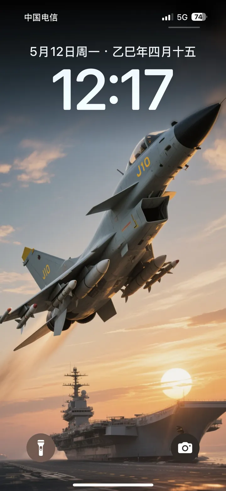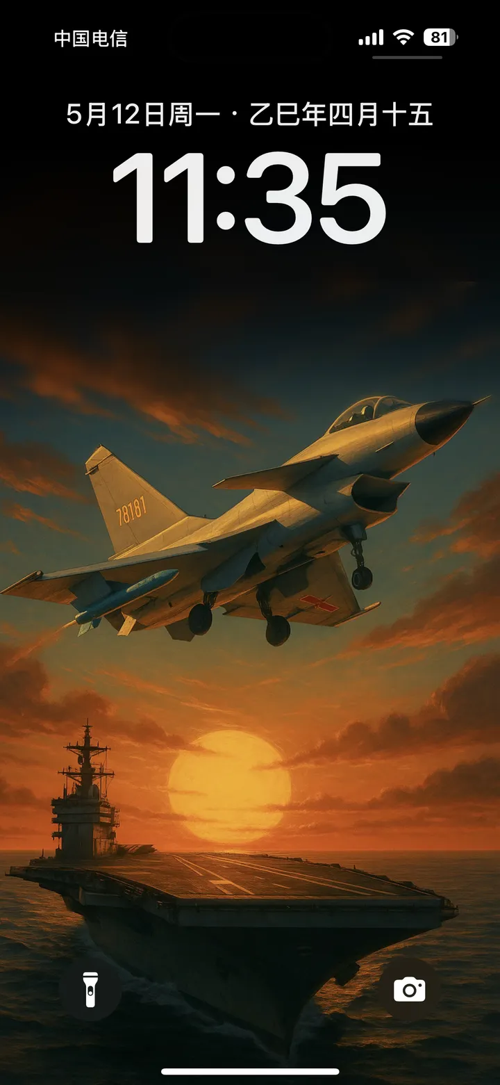 我更喜欢那个夕阳下的航母与战斗机组合图。阳光、海浪和飞机的完美融合让人感觉既壮丽又充满力量感!