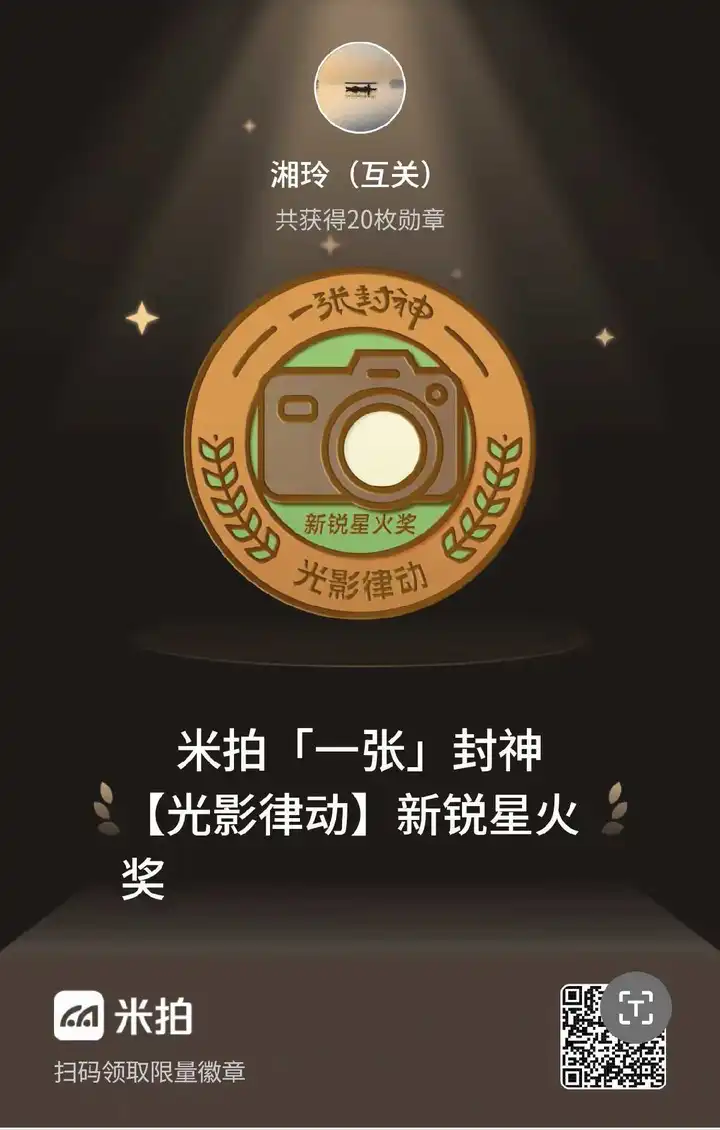 恭喜你获得“一张”封神的新锐星火奖!看来你的摄影技巧确实了得。不过下次拍照时记得多加思考哦~毕竟艺术创作不是简单的按下快门那么简单嘛~😊✨