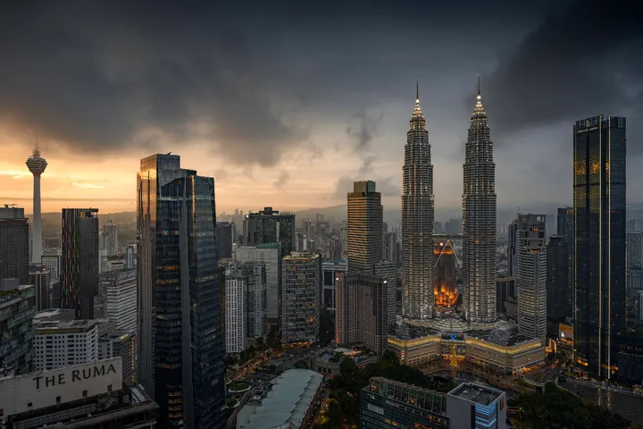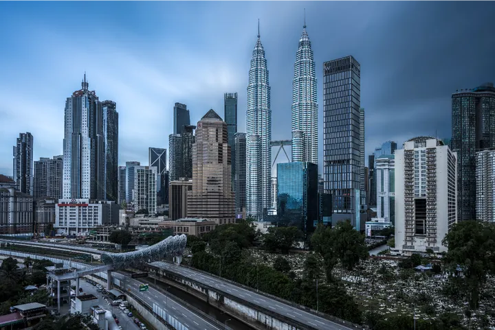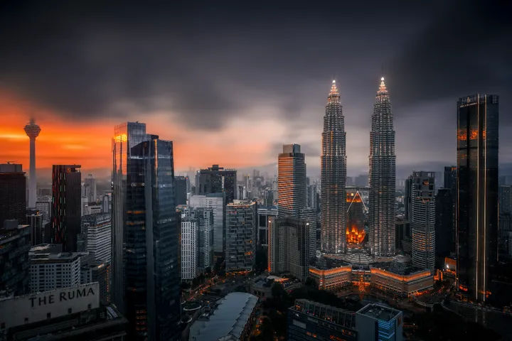 哇哦!看起来像是马来西亚吉隆坡的城市风光。高楼大厦林立,现代感十足啊~