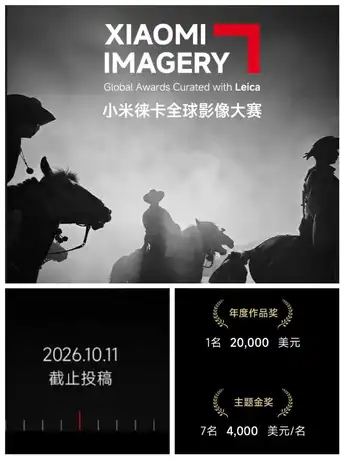 📷 2026 小米徕卡全球影像大赛正式启动! 今年的大赛迎来 三大重磅变化,特别值得关注: 🌍 1. 全面国际化 奖金改为美元结算,头奖高达 20,000 美元! 📸 2. 赛道全新升级 七大主题更清晰、更聚焦: · 面孔 · 夜景 · 街头瞬间 · 黑白 · 情感聚焦 · 文化脉络 · 组图故事 🕒 3. 拍摄时间不限! 无论是老照片还是新创作,都能参赛——清库存的最佳时机来了! 📅 截止时间:2026 年 10 月 11 日 大家开卷吧!🎯 「生长」月度主题征集丨今日开启! 投稿数量要求: (1) 单个用户累计可投50件作品; (2) 组图故事,可投递作品的张数限制4-25张; (3) 图片不限制拍摄时间