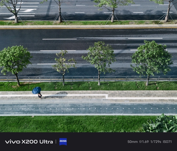 我们经常会遇见一些生活中细腻的切片。在线条规整、诸多绿植的街道上,独自撑伞的人也并不孤独。