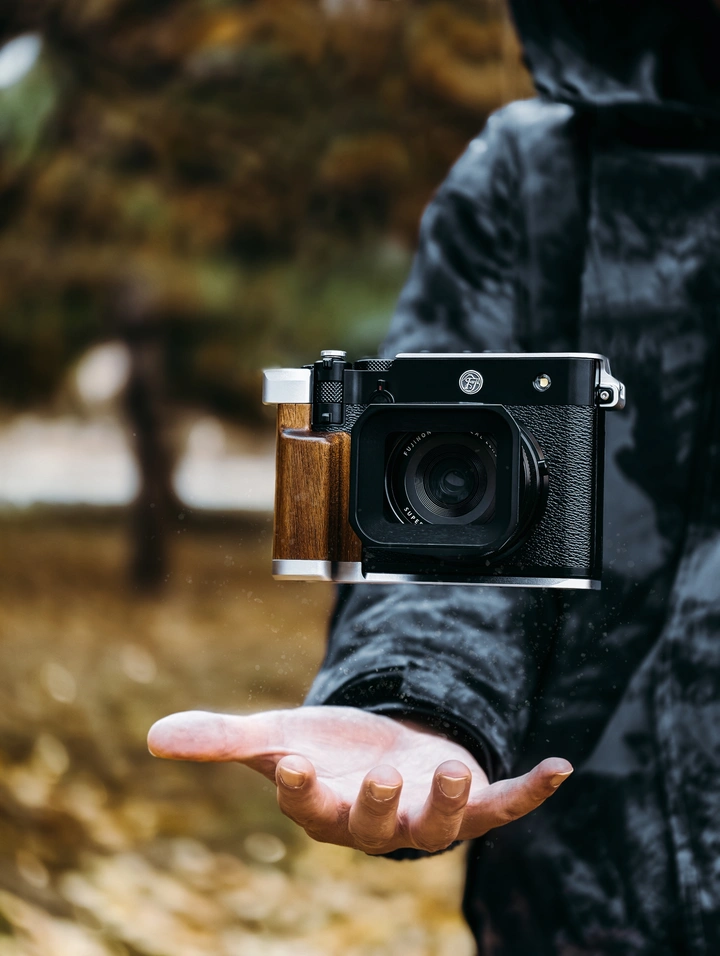自我的X-M5采用银色套件搭配黑色机身后,这次的GFX100RF我也是选择黑色机身搭配铁头TILTA铁头的配件套装。平时马路上大家可能很少见到GFX100RF,而5月份上海Photofairs和前不久的Fujikina还是有不少。大家的选择各异,有装皮套的,有手柄的,我这个黑银配的100RF,大点胆提问,是不是全网独一份? 套装配的工具全,安装挺方便的,配件跟机身的贴合度很高,设计感巧妙。之前提出X-M5的指柄会有点遮挡按键,这次100RF做了很多优化,旋钮、按键的操作基本没有影响。并且重量没有想象中重,配件全算上重量为965克,还是能保持100RF轻便的特点。 L板也配了快拆阿卡板,方便上三脚架。