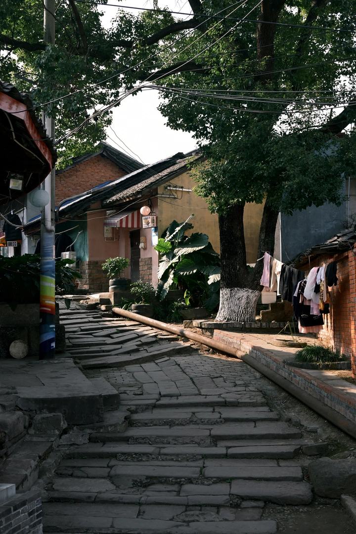 成都双流太平镇,一个超有年代感的小镇,0商业化,几乎没有游客~ 古老的石梯,斑驳的树影,彩色的墙壁,不时窜出来的猫猫狗狗…真有种漫画般的感觉。