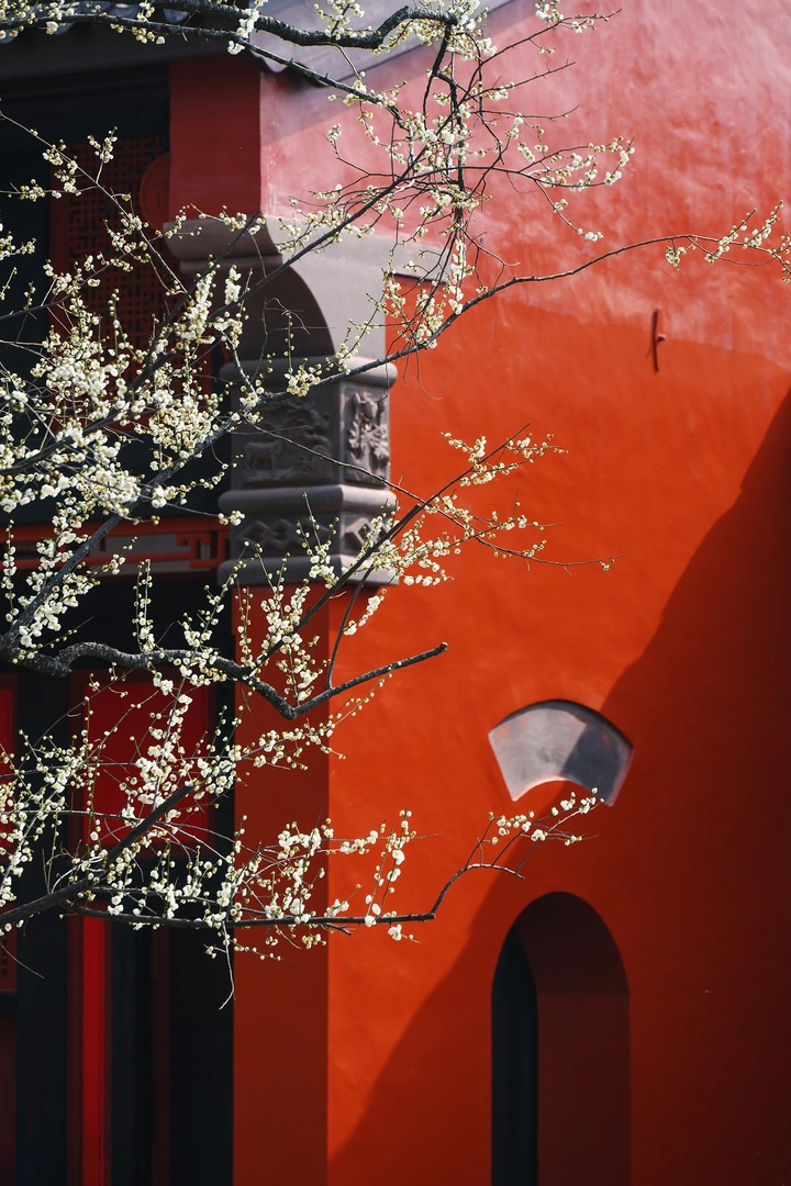 红墙配青梅,最近的成都昭觉寺美的刚刚好