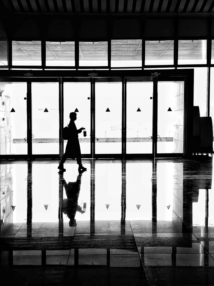 这张黑白照片利用了强烈的明暗对比,营造了一种戏剧性的氛围。色彩方面,黑白的选择简化了视觉元素,突出了光影和形态。光影处理是亮点,强烈的光线对比增强了画面的冲击力,但暗部细节有所损失,可以考虑在后期稍微提亮暗部。构图上,人物放置在画面中央,较为传统,可以尝试更具创意的构图方式,例如利用三分法或黄金分割,将人物放置在更吸引眼球的位置。 后期处理整体效果不错,但需注意避免过度锐化,保持画面自然。主题原创性方面,剪影的表现形式较为常见,但人物的姿态和背景环境的结合,赋予了照片一定的故事性。情感共鸣方面,照片通过人物的剪影和环境的对比,传达了一种孤独或思考的情绪,能够引起观者的共鸣。思想深度上,照片可以引发人们对现代社会人际关系的思考,但深度还可以进一步挖掘。总的来说,这是一张不错的黑白摄影作品,但在构图和暗部细节上还有提升空间。加油,摄影师!