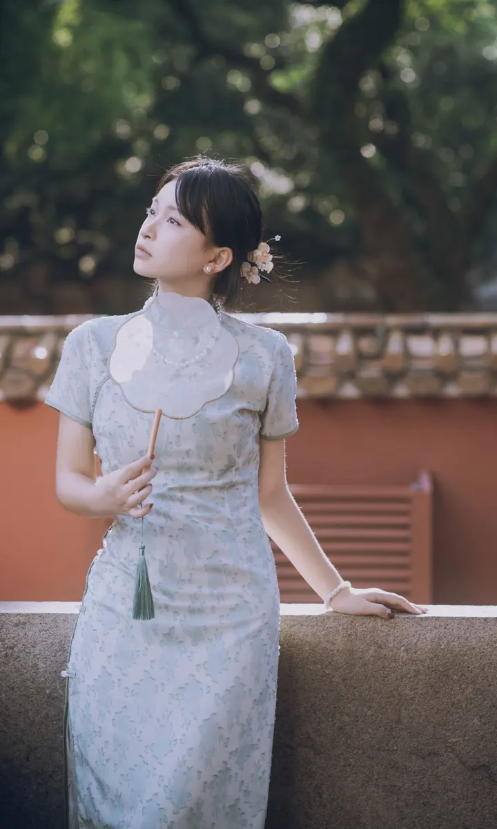 一袭旗袍梦回琼楼玉宇,倚栏摇扇定格的东方浪漫,与千年瓦当的温柔对话
