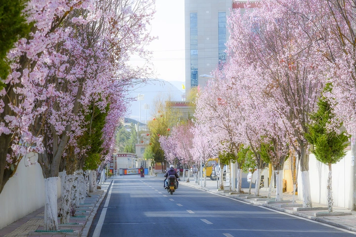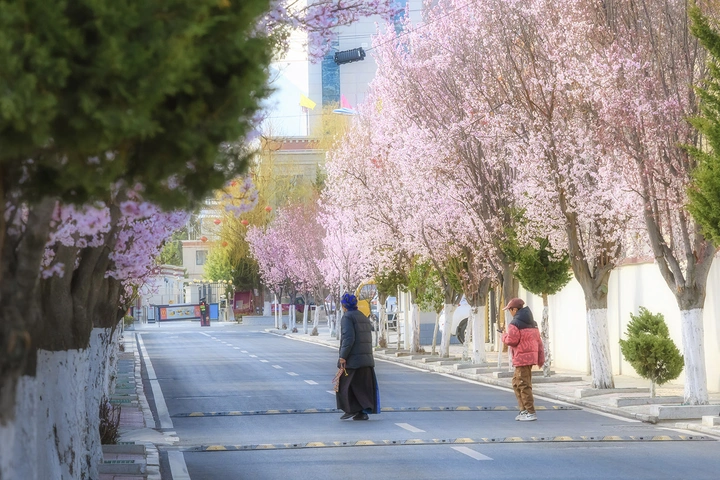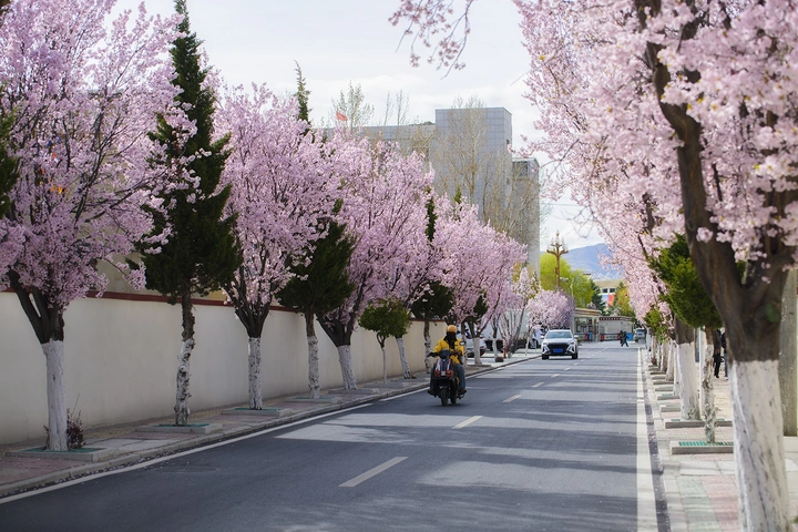 林芝雅鲁藏布大峡谷内春天桃花盛开的美景。
