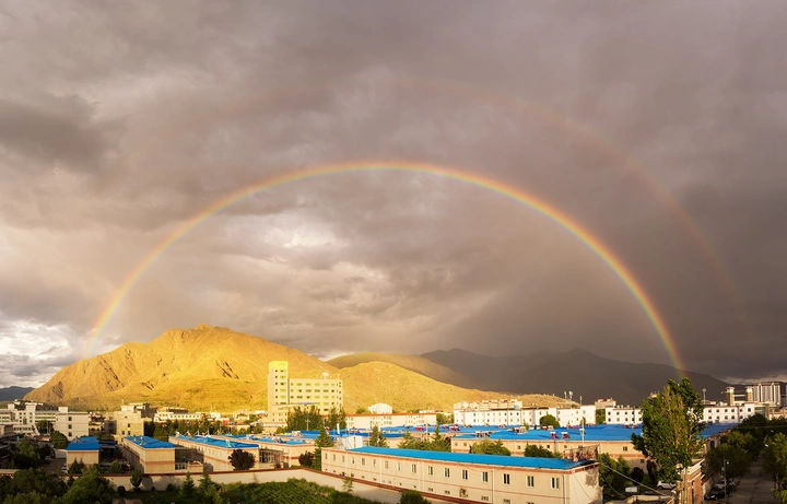 西藏山南海拔4800米的的一处峡谷,正前方山峰的后面就是西藏四大神山之一的雅拉香布神山。