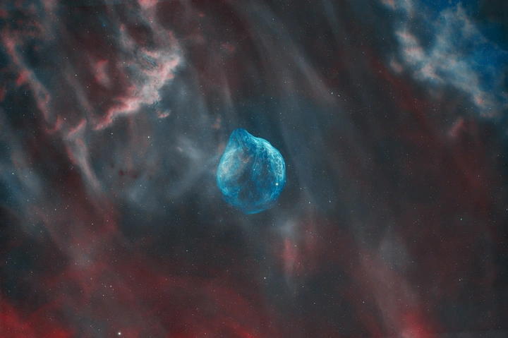 位于大犬座中心附近的一个电离氢区,由电离氢组成, 海豚星云呈泡泡状,是电离氢气的发射形态,展现出深空天体之美。