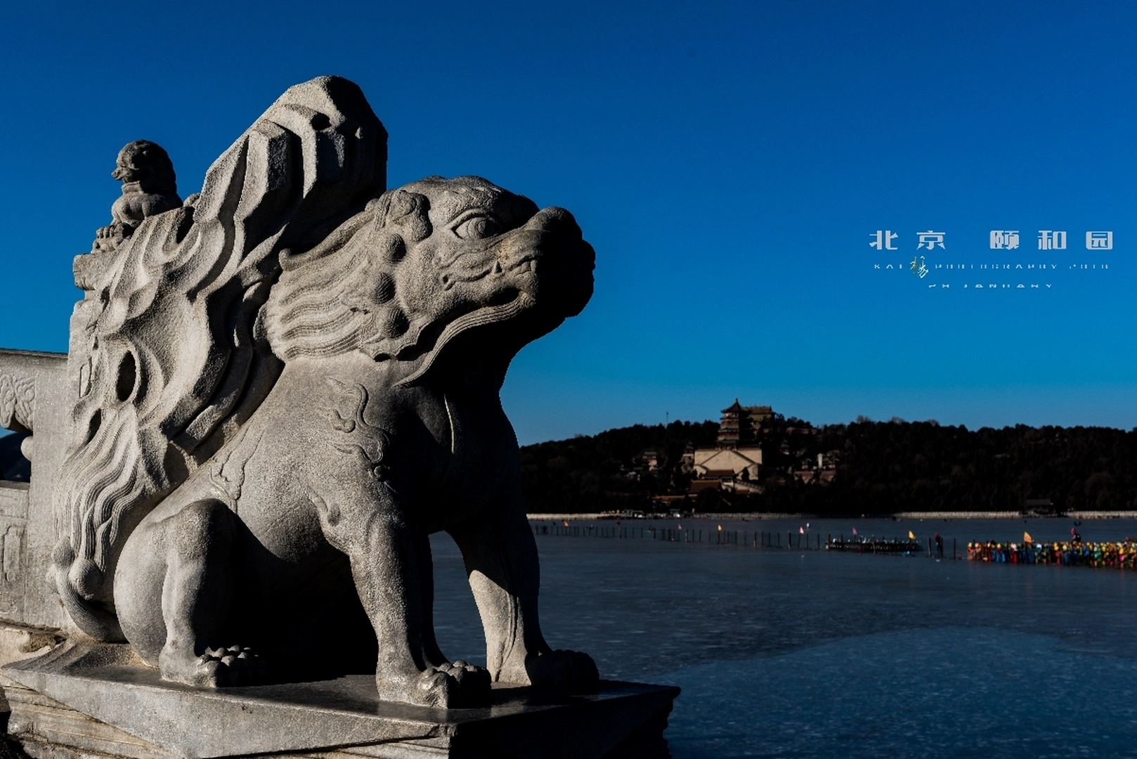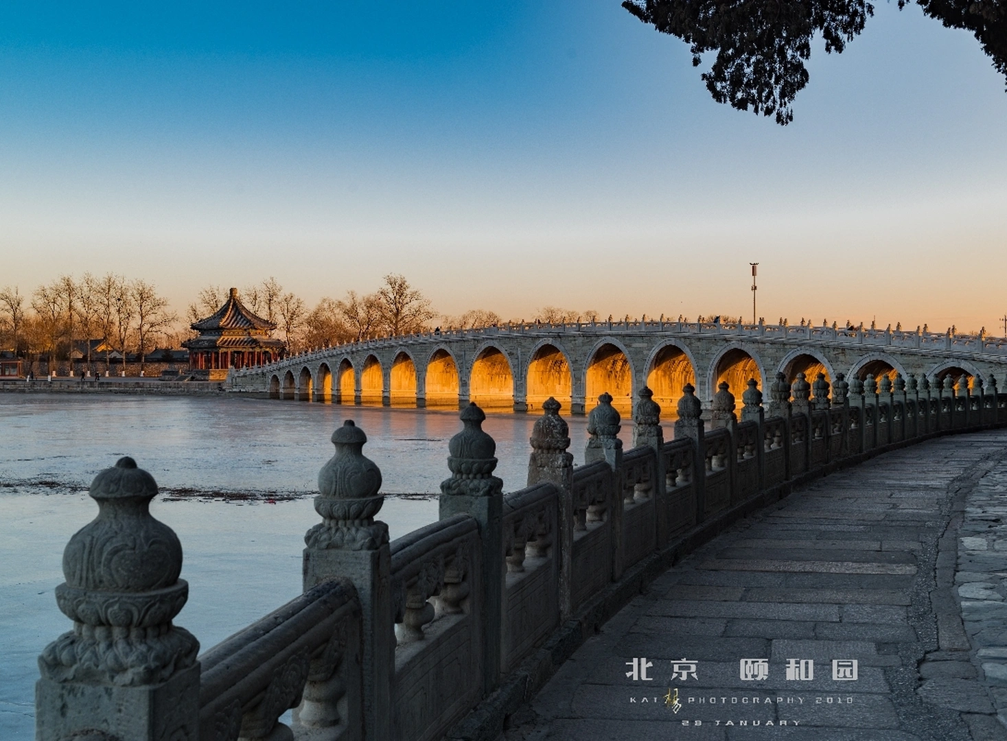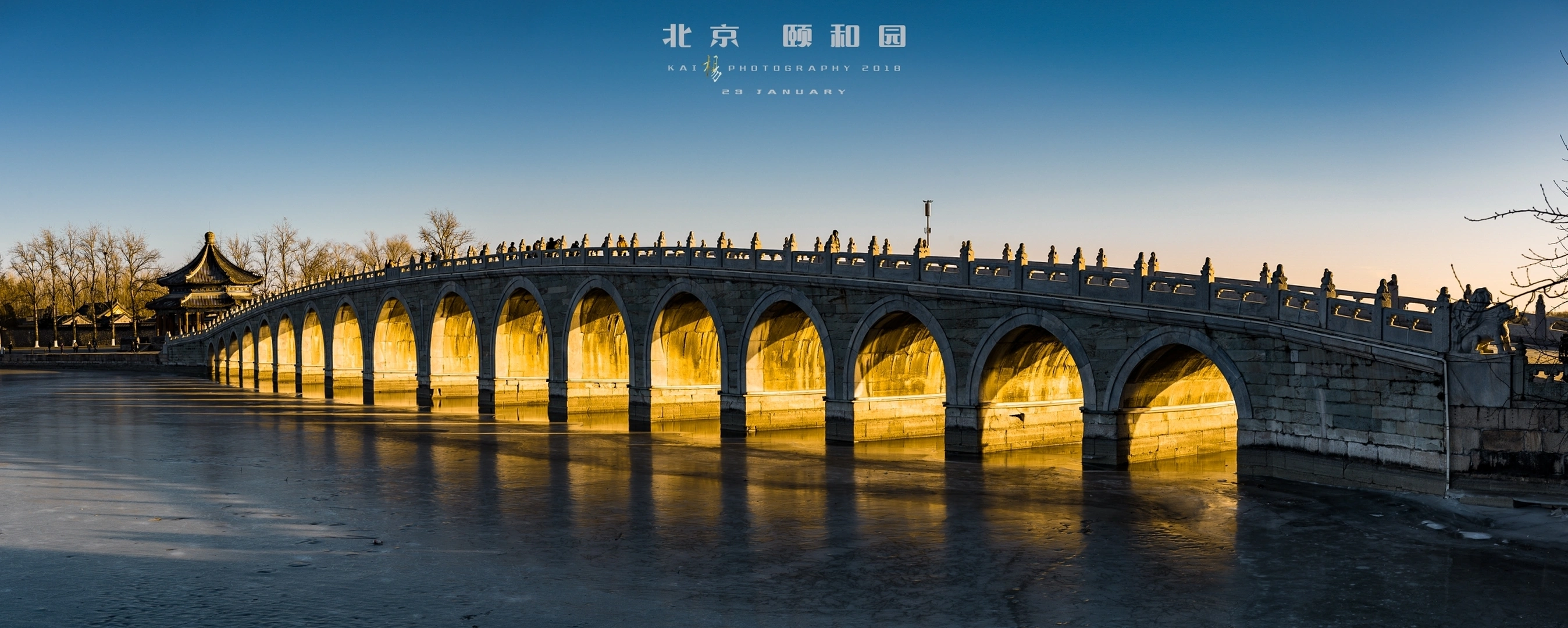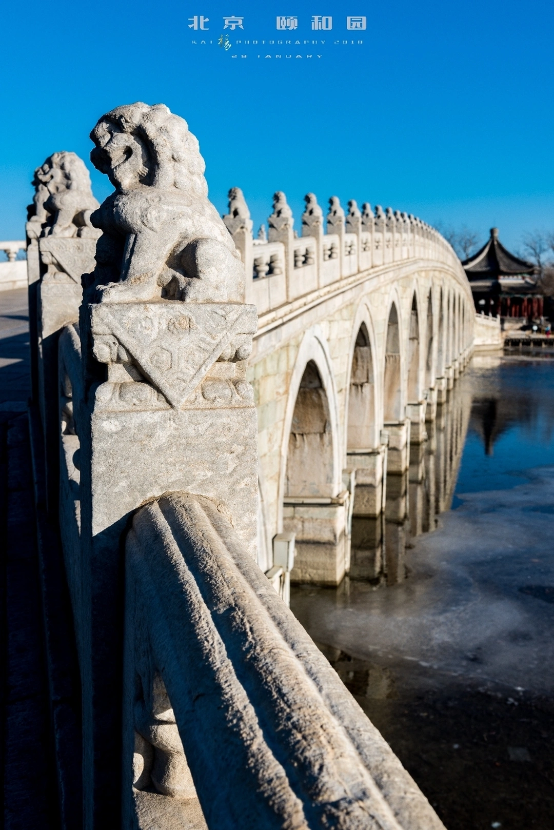 1.23来北京,天气很给力,虽然比较冷,但是空气质量很好。来到了冬日颐和园拍一下今年很流行的十七孔桥。