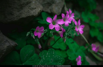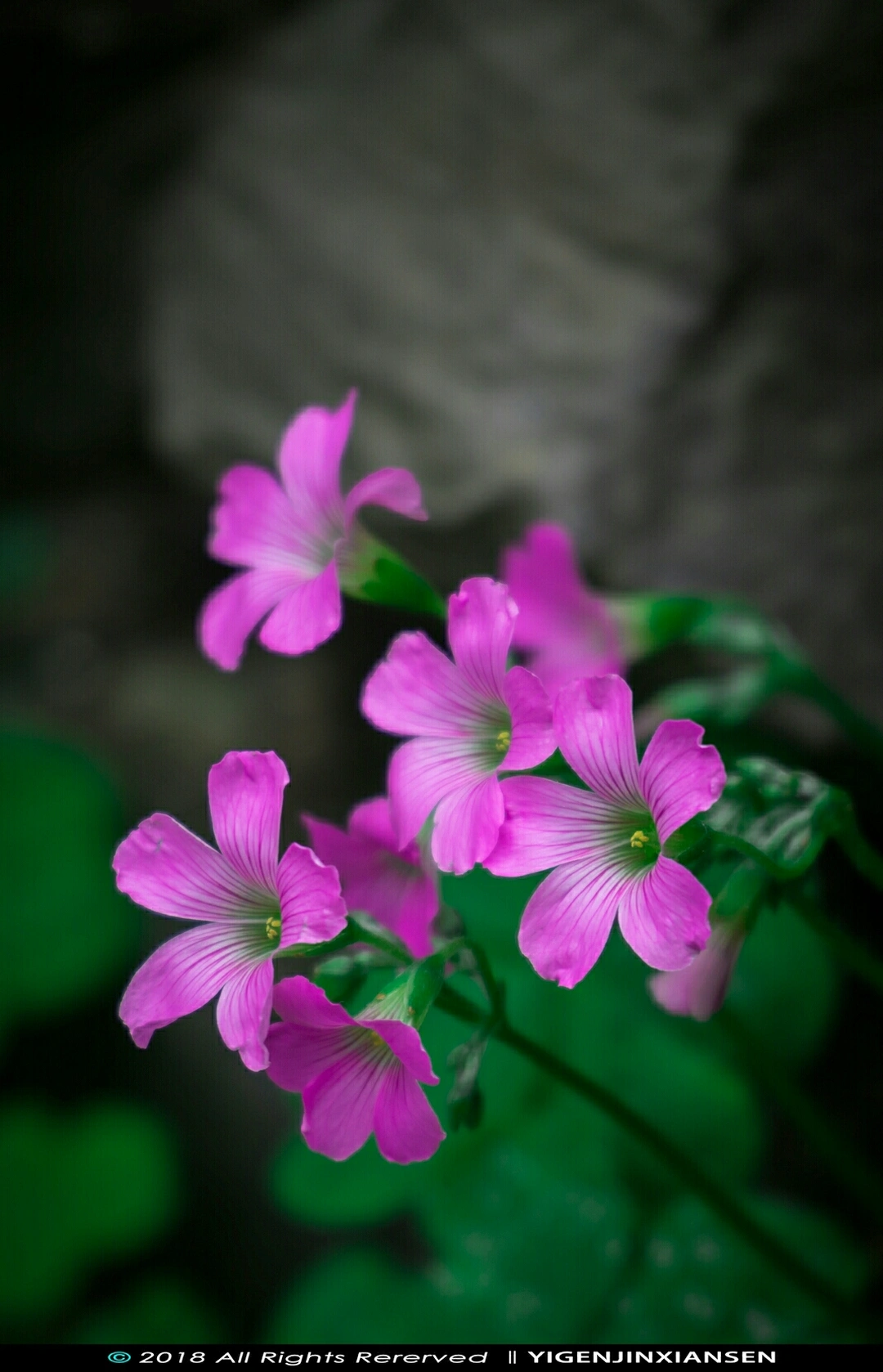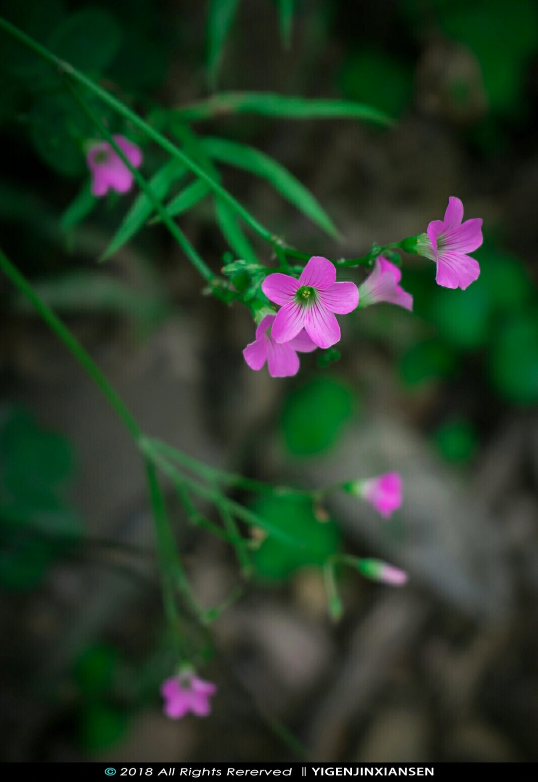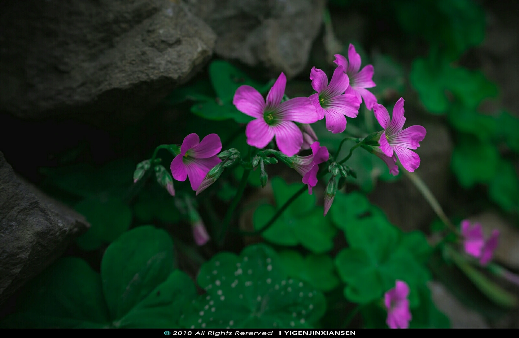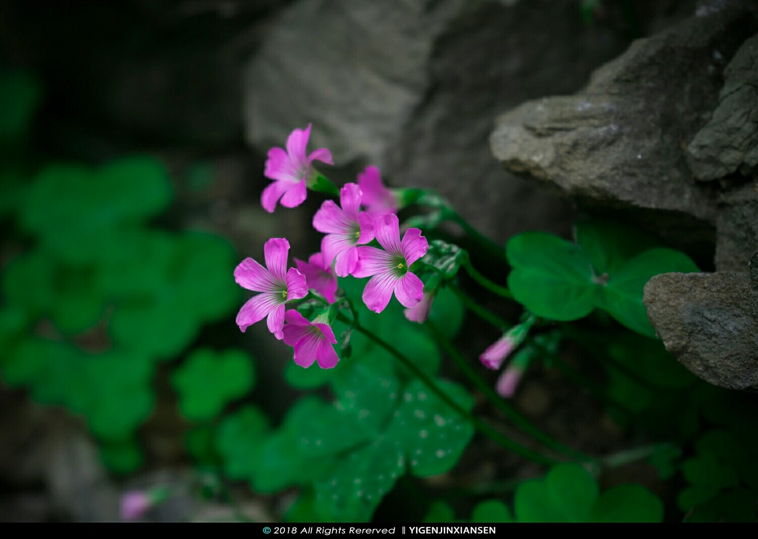 缝中花 石缝里的红花酢浆草 在一个雨夜过后还能如此鲜艳般绽放