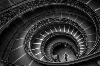 梵蒂冈博物馆的旋转楼梯。 高峰期在这里拍照片真的不是一件容易的事情。 足足等了2个小时才有这人少一点的图。 感谢陪我耐心等待的老王~