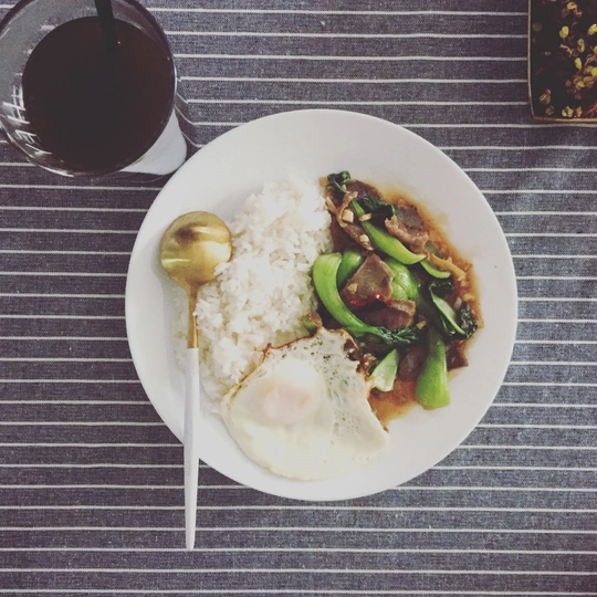 菜远牛肉 特地摆得像香港茶餐厅的快餐摆盘一样 搞了一杯黑乎乎的水假装冻柠茶 #一个程序员的用心良苦