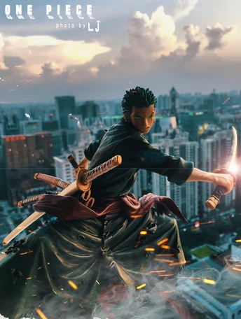 ONE PIECE——"夕阳武士" 索隆 《海贼王》“三刀流”索隆,眼镜厂景品,今天刚到手,景品做工和细节都非常出色,动态神态都很到位,拿在手上分量十足,话不多说,趁夕阳,噼里啪啦拍![酷]