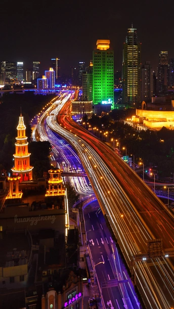 新鲜出炉,今晚在恐高中撸了一张延安高架夜景
