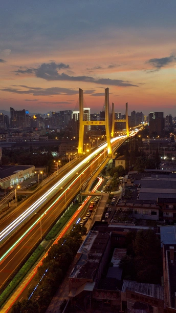 十一长假,看你们晒美食晒美景的加班狗只能楼顶手机撸一张,杭州文晖大桥日落夕阳景色[奥特曼][爱你]