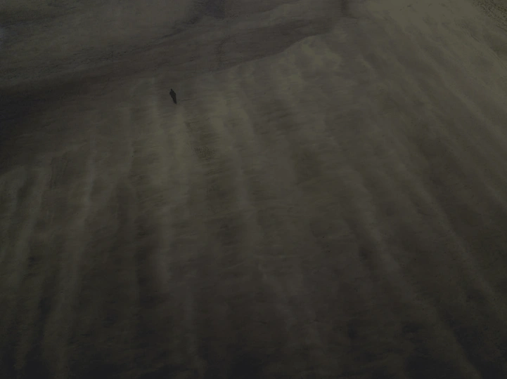 大疆御俯拍一个人走在无人的沙滩上,仿佛寻找自己的想要到达的目的地
