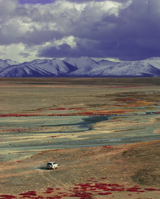 拍摄于青海哈拉湖西岸,远处为团结峰雪山,同行伙伴下山探路,壮美河山尽收眼底……当时的情况是,我们悲催的迷路了[睡觉][睡觉][睡觉]