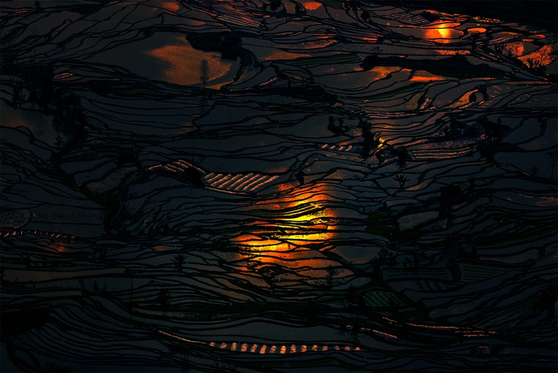 大地溶金。摄于云南红河哈尼族彝族自治州元阳老虎嘴梯田。