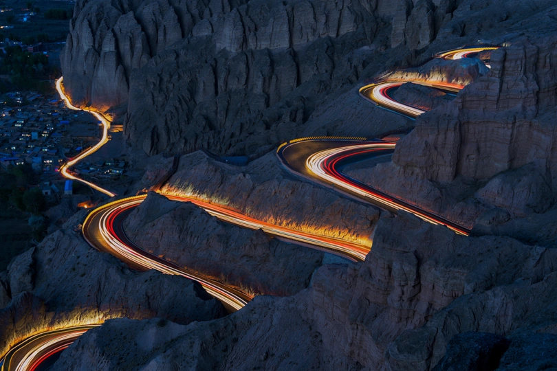 拍摄于黄河石林二十二道弯 拍摄了8张然后后期最大值堆栈拉出完美的车轨
