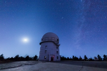 今年初春,来到了云南省丽江市高美古天文台。在这里,正好赶上月落和淡淡的秋季银河升起,遂把这台中国口径最大的光学望远镜当地景,拍下了这张照片。 欢迎大家打分支持!