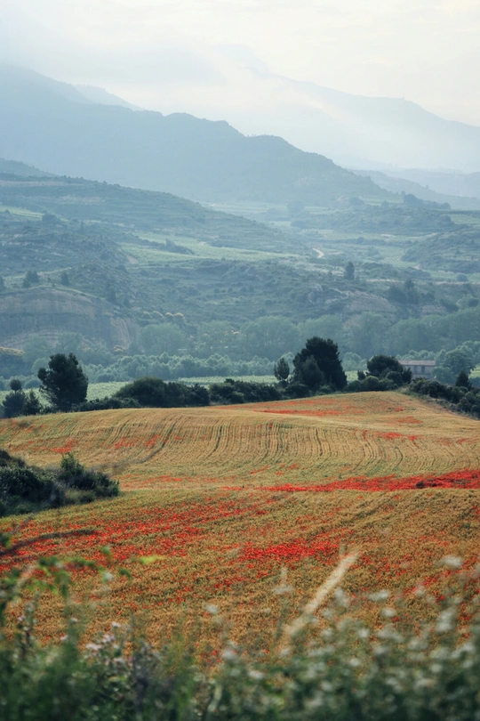 西班牙La Rioja的美景,麦田里野蛮生长的红色罂粟~