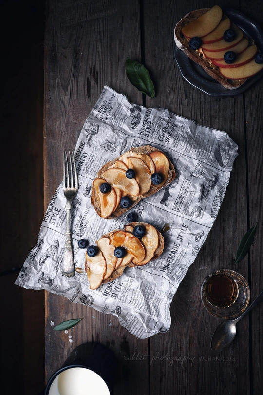 亚麻籽欧包 椰子糖腌制了苹果片,烤箱烤一下 淋上枫糖浆,丢几颗蓝莓