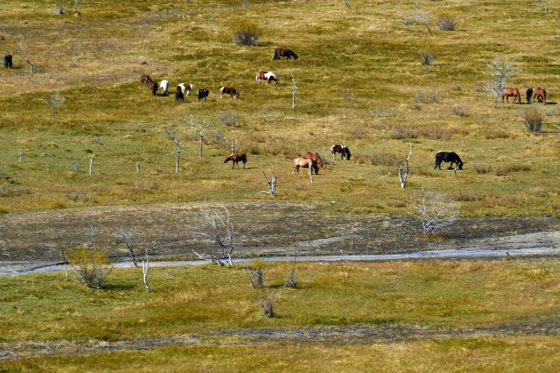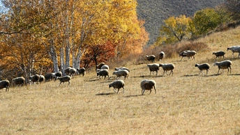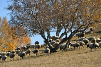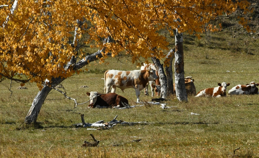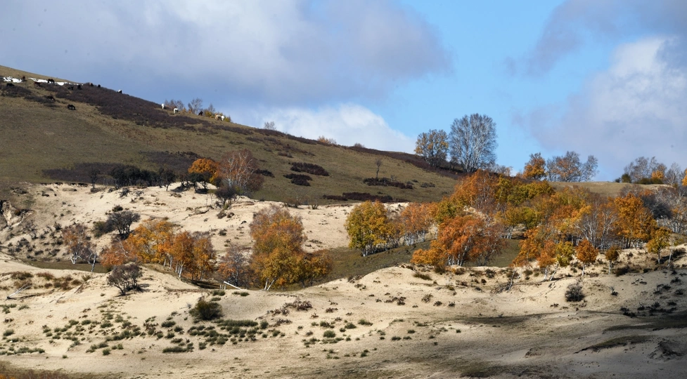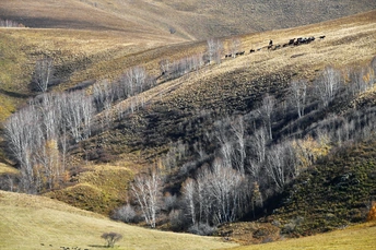 《牛羊遍洒,油画秋天》……乌兰布统坝上的秋,美的大气任性。 走进乌兰布统,低缓起伏的山坡、断续分布的树林、草甸,丰富的地形变化、河滩光影,明暗轮廓线,若真若幻,视觉纹理强烈,渲染出朦胧的意象美,遍地都是秋诗语言,行走间会不知不觉陶醉在五彩斑斓的画卷里。 看了许多秋景,才感到乌兰布统坝上的秋景,才是我内心深处一直想要遇见的那种秋景。穿行在五彩的画卷的中,享受自然奉送的诗意,漫听坝上岁月的秋音,会爆发许多灵感。 我把几天拍摄的照片归为四篇分享给大家:《霜叶染层山,绚烂如油画》;《秋语意悠悠,尽染眷恋里》;《牛羊遍洒,油画秋天》;《草甸湿地秋意浓,流淌画布染金