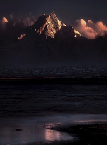 2月的希夏邦玛峰冰雪覆盖,寒冷刺骨。