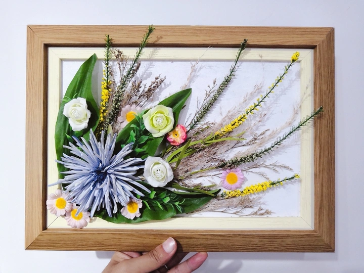 用工作室的花花草草和废弃的相框做了一个植物装饰画。第一次做这种东西,搞了好久,成品勉强算个及格吧。