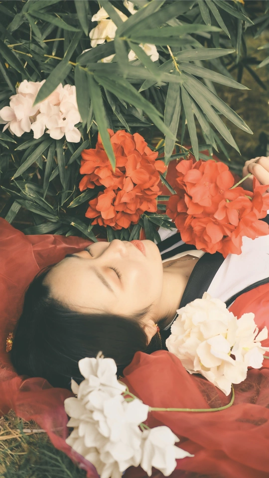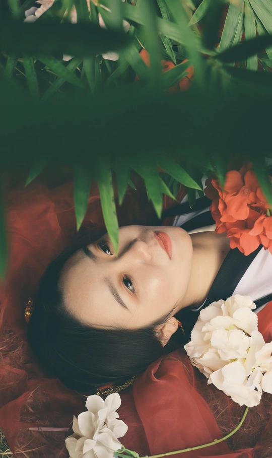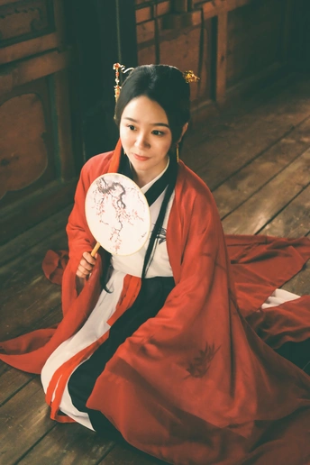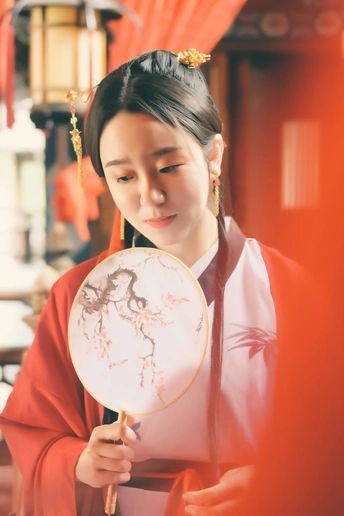 莫问长发为谁盘 红妆为谁穿 却下相思扇 拨开串串珠帘 莫问红烛为谁燃 红绸把谁牵 誓词声高远 你站在谁对面