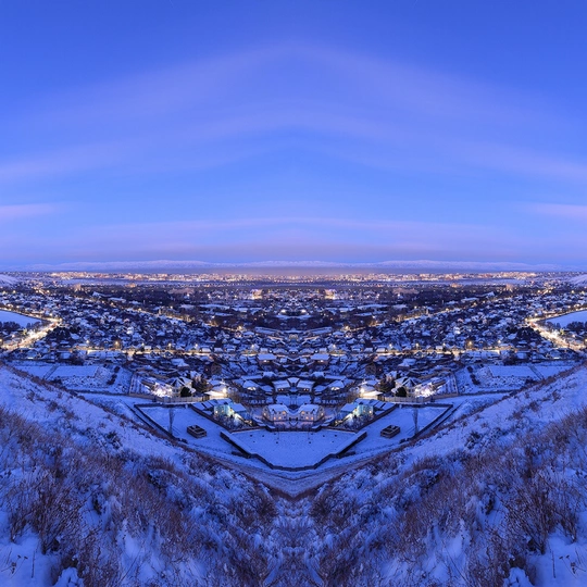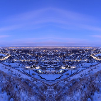 吉尔吉斯斯坦🇰🇬,比什凯克,冬,日落后,一片安静祥和的气氛,万家灯火,夜幕低垂……
