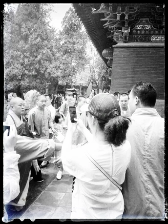 第一次去少林寺 看见释永信方丈 一众人保护 一众人围观 第一次登嵩山听见一位僧人提醒行人安全说: “上山的上山,下山的下山。”