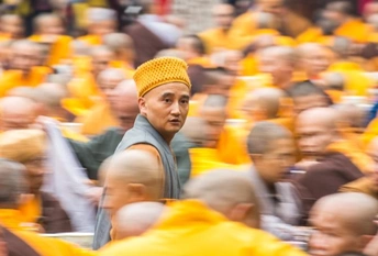 2018年11月4日,四川省成都市昭觉寺举办“千佛斋”法事活动,这是在活动现场抓拍的一位僧人。