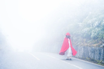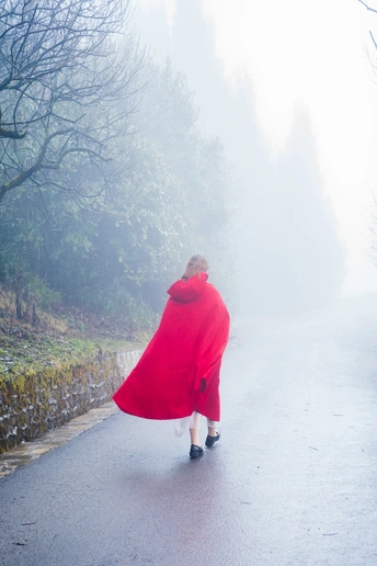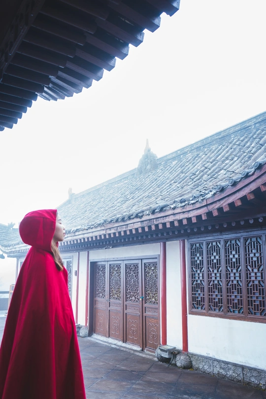不知道有没有小伙伴看过《无心法师》,没错这就是剧中岳绮罗的红斗篷。相信很多人都和我一样被岳绮罗所惊艳到。但是今天我没有按照岳绮罗风格来拍这件衣服。而且选择了比较神秘的迷雾森林的感觉。希望大家喜欢。