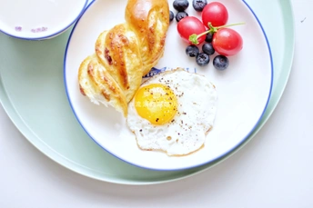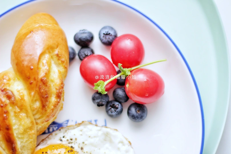 「流浪の喵喵早餐」309 🥗早餐:【快手早餐09】面包➕牛奶燕麦 🍡制作: ①半根市售的面包烤箱叮2分钟,一碗纯牛奶微波炉高火叮1分钟,鸡蛋平底锅单面煎熟撒点盐和黑胡椒碎。 ②燕麦片倒入牛奶里,蓝莓小番茄组合,摘一朵薄荷点缀一下。 ⏰用时:7分钟 💰花费:鸡蛋0.5元+牛奶2.5元+燕麦片约0.5元+蓝莓小番茄约1元+面包4.5元,共计9元 🐱絮叨:新年第一天,还没有完全想好如何开启不一样的一年,就先这样了。客厅要收拾一下,给出更多的空间让我自由自在的活动~话说,得买个超大的暖风机在客厅里用了,空调完全是个摆设呀~啊呜啊呜~