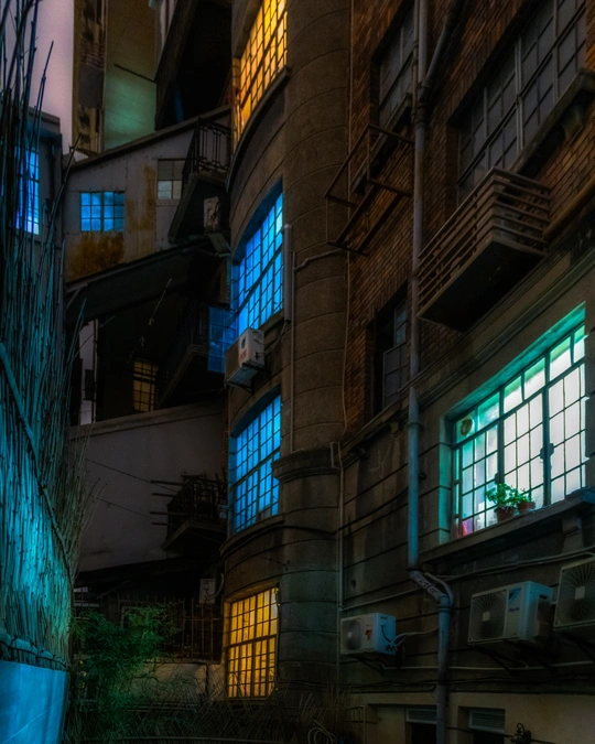 橙蓝绿青,这种老新村夜晚独有的色温吸引了我