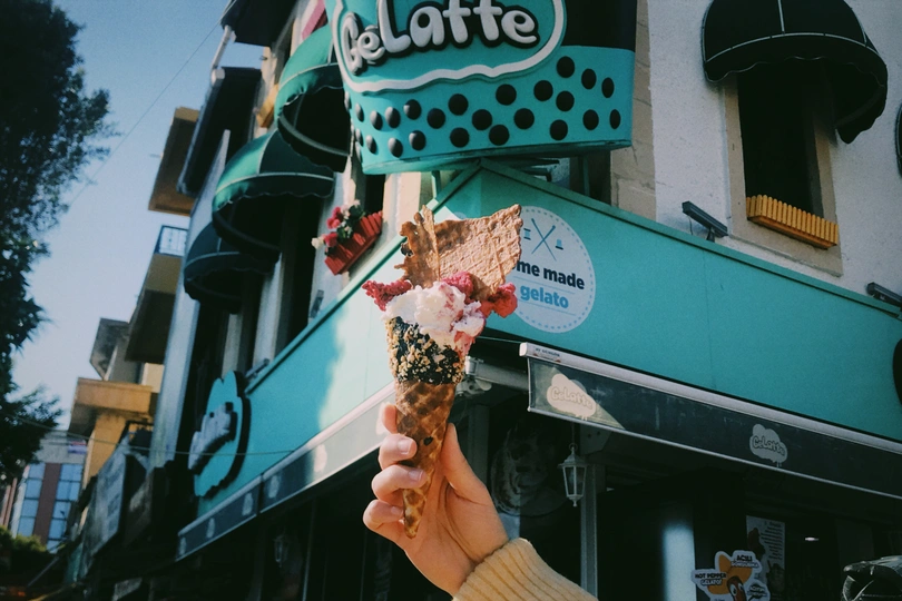 旅行中一起遇见了有趣的人 结伴同游 吃了向导推荐的羊奶冰淇淋 选了yoğurt 辣椒 桑葚三个口味 辣椒味意想不到的好吃