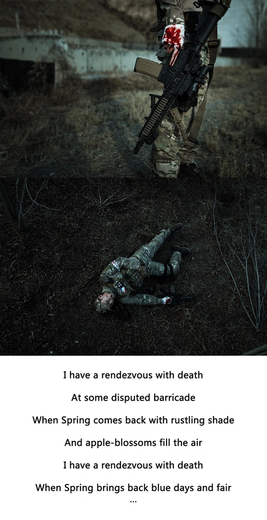 在某个争战的工事里 我与死神有个约会 此时春已婆娑而回 苹果花怒放空中 春携着蓝天与美好而至 此时 我与死神有个约会