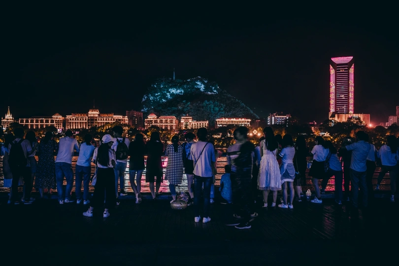 五一夜里的街道好多人人山人海,差点就没赶上末班车,大家五一快乐—理光gr3
