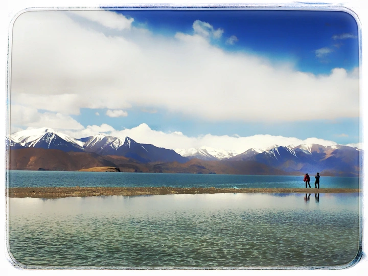 天湖班公错。 班公湖在阿里日土县内,大部分在中国少部分居属印度(克控)我们环游国内大部分,到边检站口乌江村返回。此湖不仅高(4300)且怪,中国部分是淡水,印度部分是咸水。