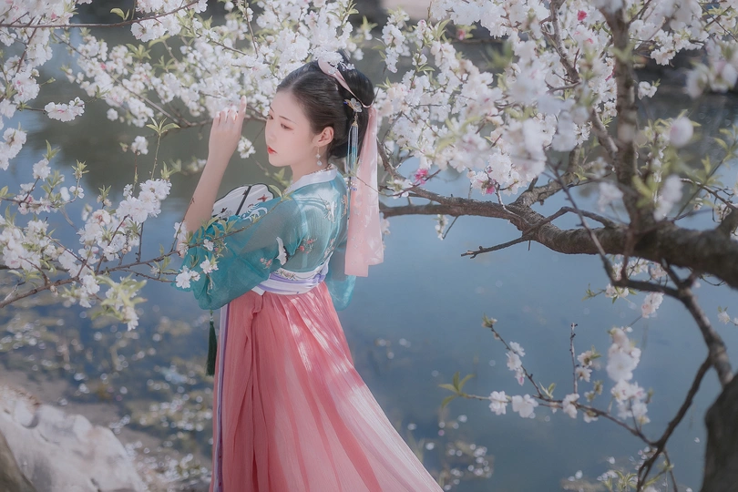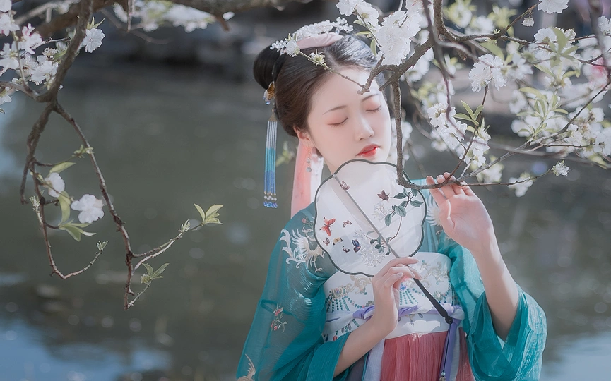 一组湖边的樱花,仙女和明媚的春光太配了