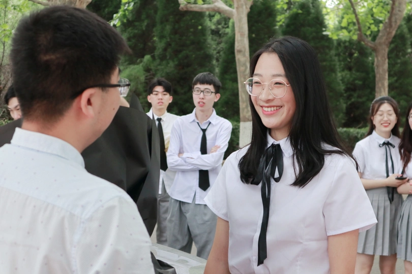 拍毕业照时同学被男友抱着99朵玫瑰现场求婚。