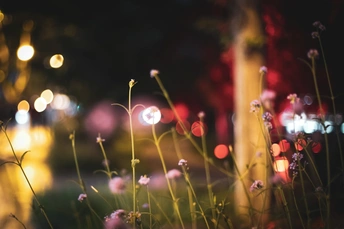 路边绿化带的彩灯照亮了整条街,试着拍一张不一样的照片。