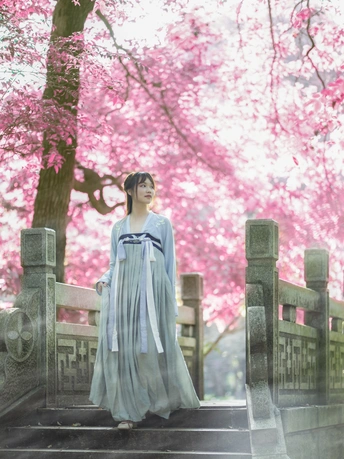 “北行见樱花,冰肌玉骨丽如画,裙袂翩跹随而往,唯有宴山亭亭而立”