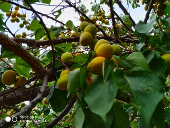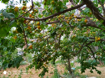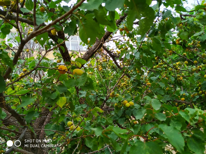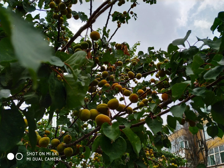 现在正是杏的成熟季节,发现一棵杏树,满满的杏挂枝头,真是好看。