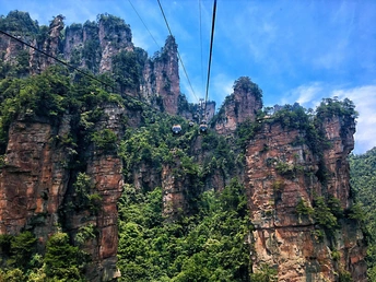 索道上看天子山,脚下无比险峻,抬头风景无法言语