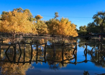 额济纳旗 这里是体验秋天的绝佳之地 曾经听人说 黄与蓝的搭配无异于红与绿 可我并不这么认为 黄色与蓝色充盈的画面往往让我觉得惊艳 大概这也是我为什么那么迷恋埃及金字塔的原因吧。