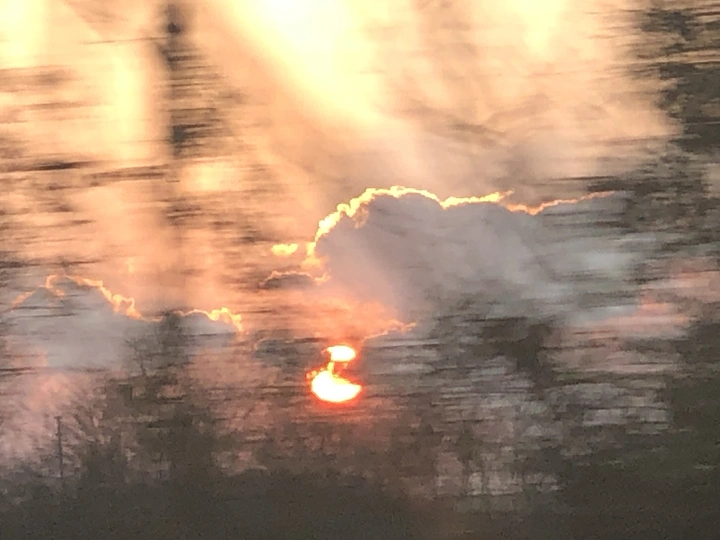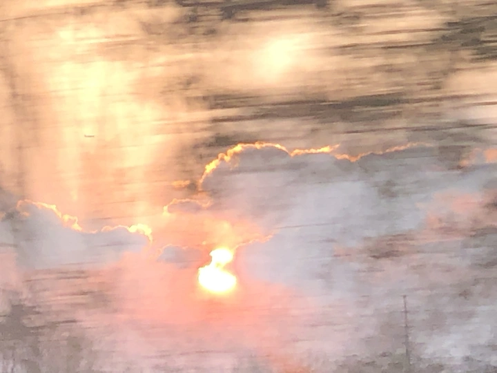 傍晚的高速公路上,时速120迈,把手机放在车窗上的偶得